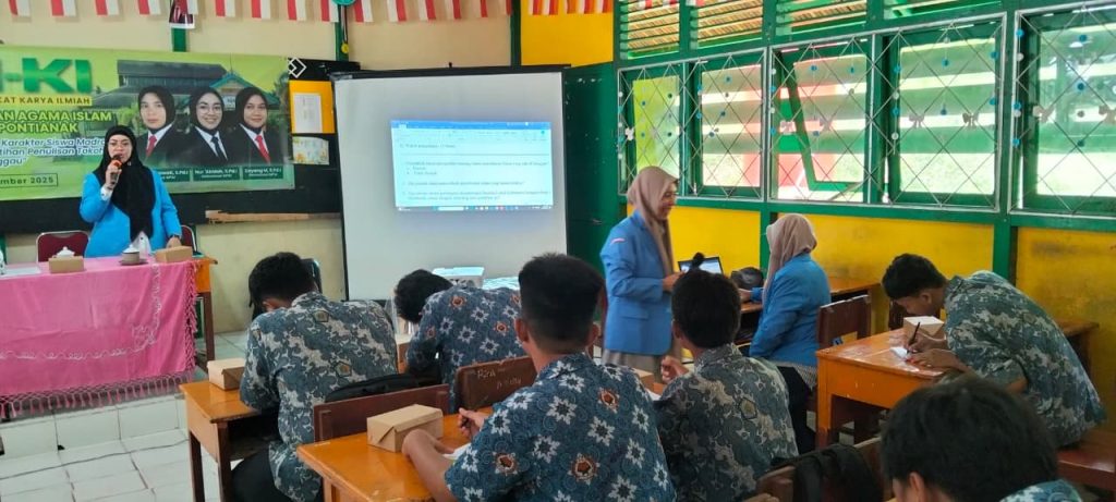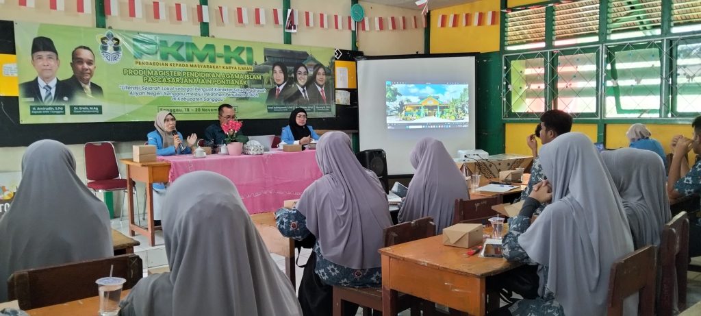 SANGGAU – Dua puluh murid MAN 1 Sanggau mengikuti kegiatan Pengabdian Kepada Masyarakat – Karya Ilmiah (PKM-KI) yang difasilitasi oleh tiga mahasiswa Program Magister Pendidikan Agama Islam IAIN Pontianak, yakni Dewi Sulistyawati, S.Pd.I, Nur Abidah, S.Pd.I, dan Dayang M., S.Pd.I. Kegiatan tersebut berlangsung pada Rabu (19/11/2025) di ruang kelas X A MAN 1 Sanggau.
